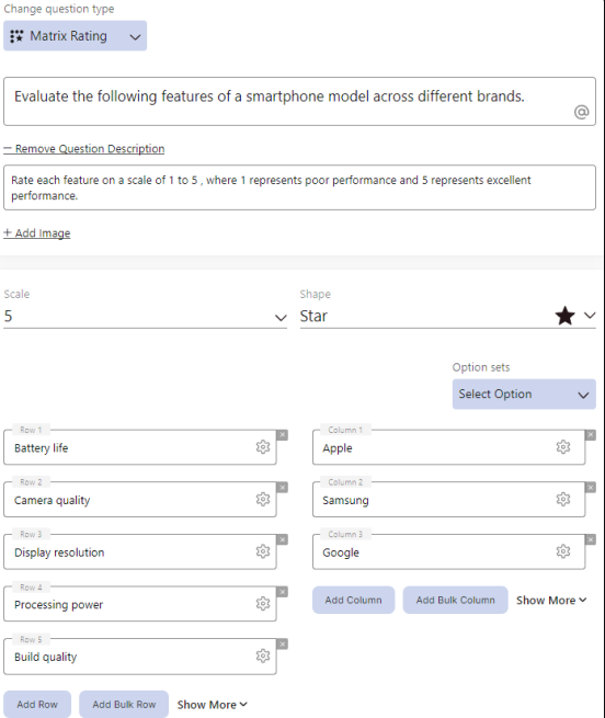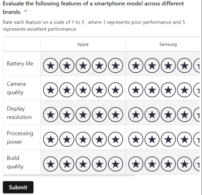 We have introduced matrix star rating using which can be used to evaluate matrix rows and columns with star rating.