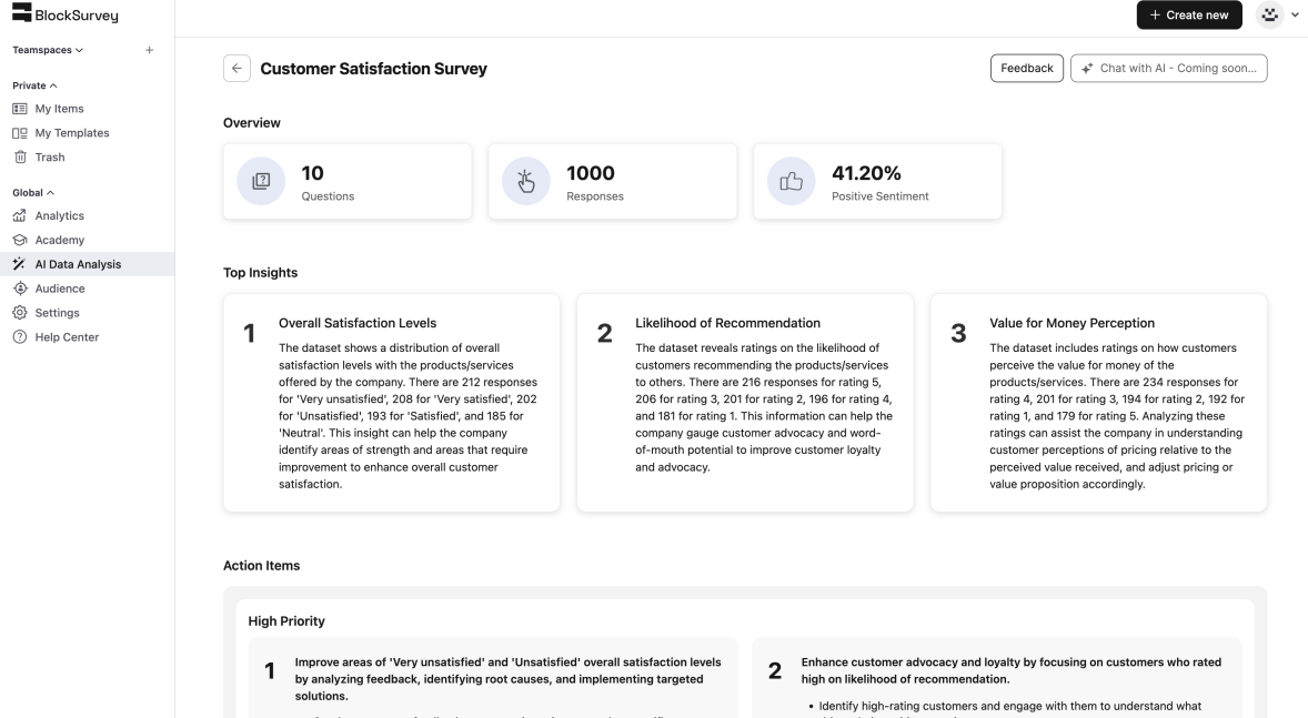 AI-powered survey analysis tool unlocks insights from your survey data in seconds.
