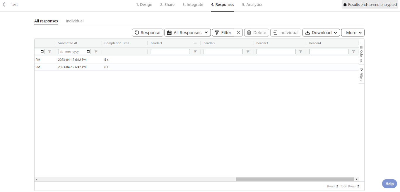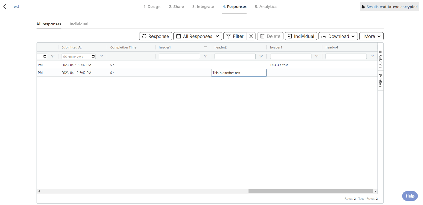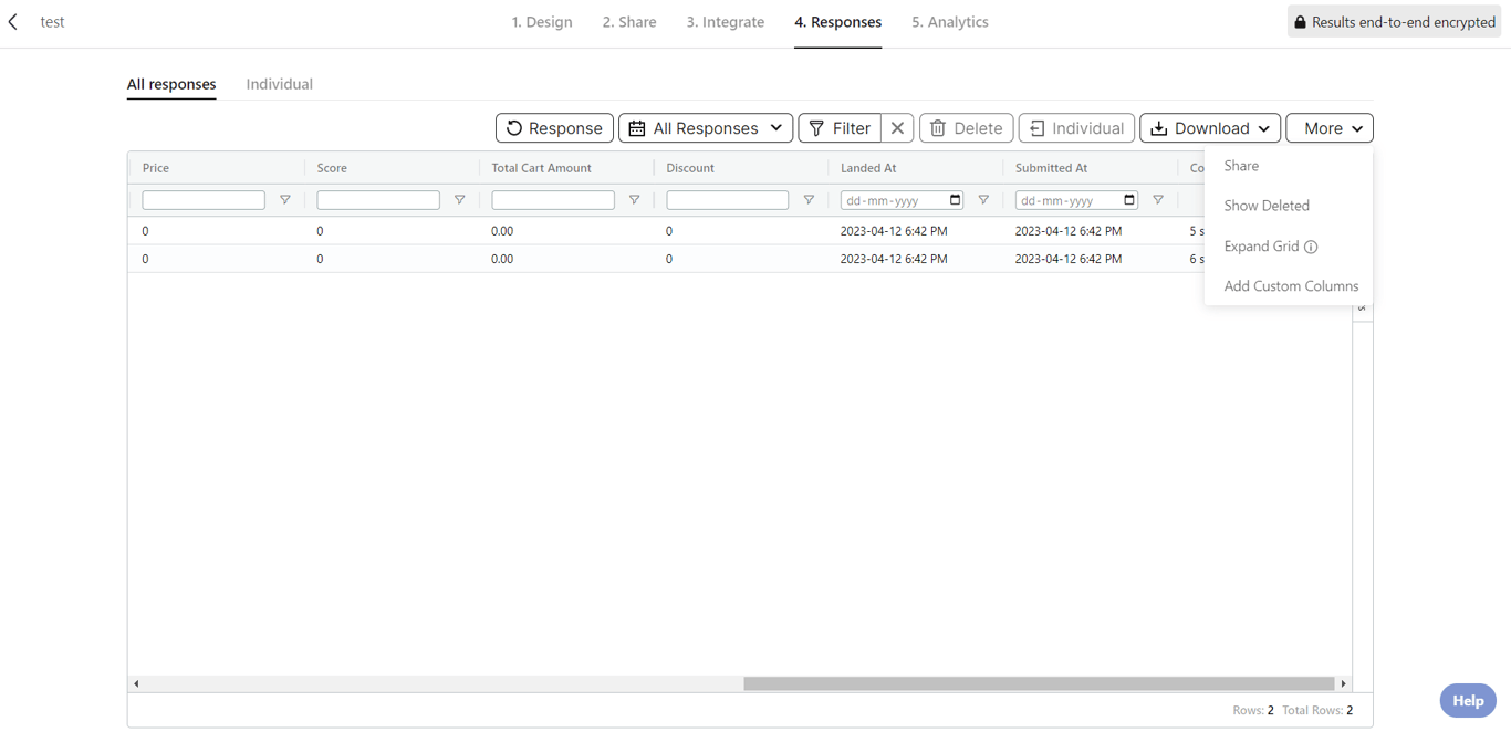 Hi Harini! I had a question about Blocksurvey - is there any support for drop-off statistics? For example, if someone were to fill in questions 1-3 but not complete the survey, is there any way we could track that? I'd like to know the completion rate of the survey, and more specifically, what pieces people are hesitating on .Thank you.