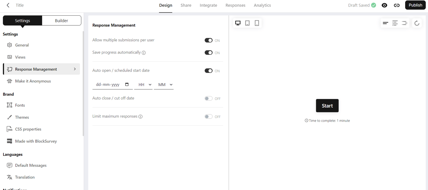 We have introduced the Auto open/scheduled start date feature for providing a better operational control. Users can now schedule their survey on a pre-determined date.