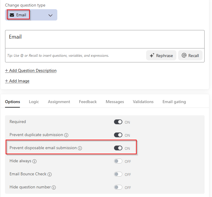 Enhance data quality by preventing the use of disposable or temporary email addresses for survey submissions.
