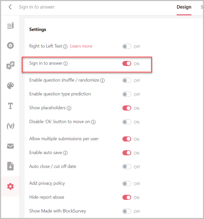 Now we are providing a new feature that allows survey creators to select the Sign in to Answer method that respondents should use to sign in.