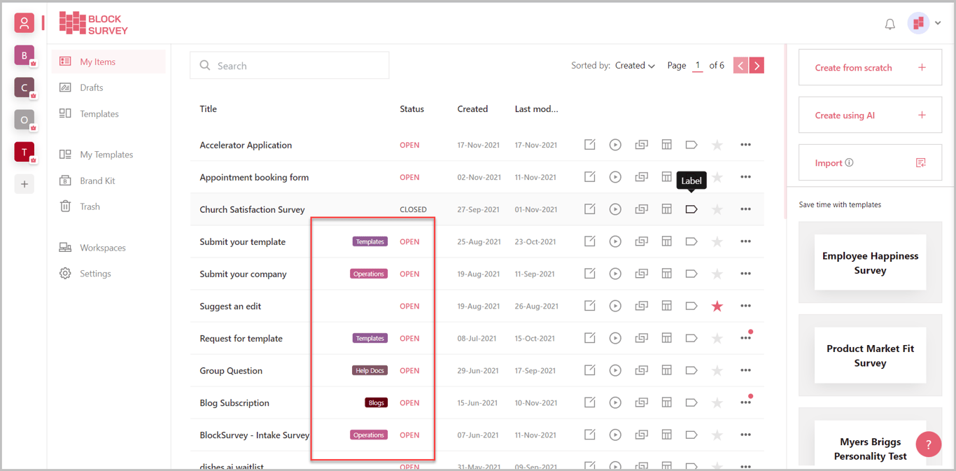 Add tags to organize forms and surveys. filter/search by using label:<tag-name>