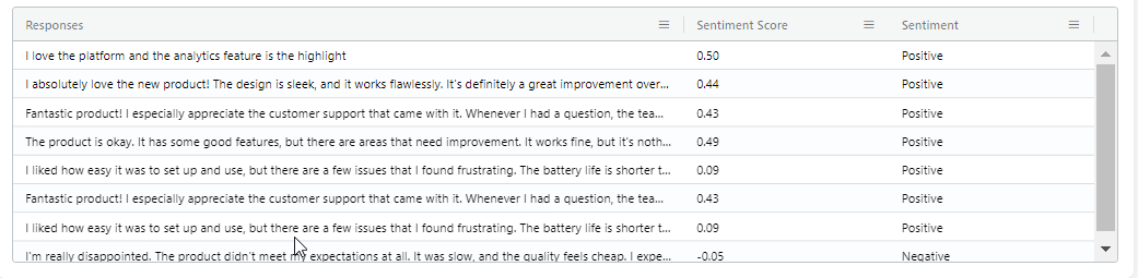 Get real-time emotional insight with sentiment analysis. This feature analyzes text responses and categorizes them as positive, negative, or neutral, helping you understand the overall emotional tone of your survey data.