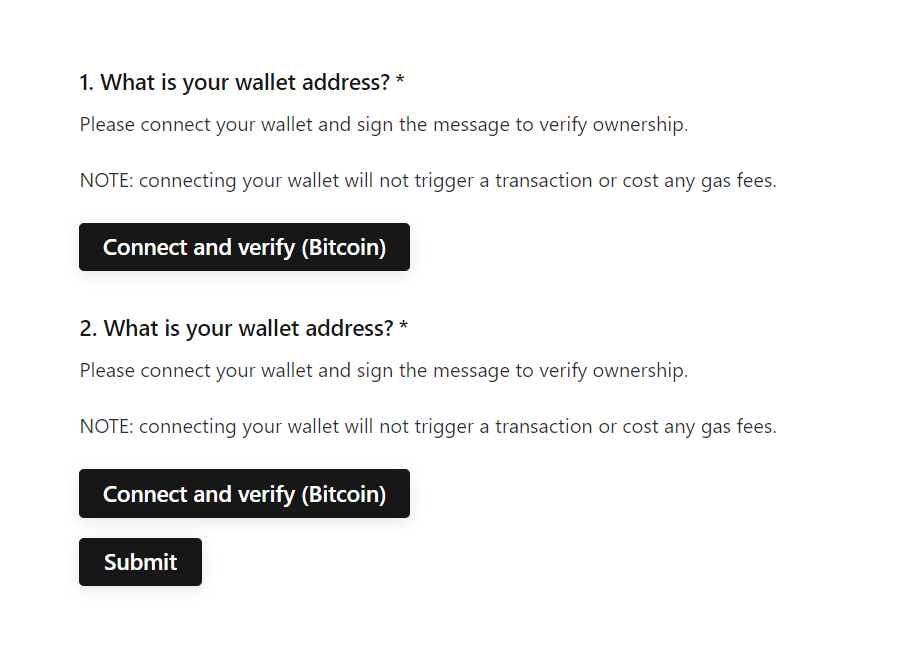 Use Case: Ideal for surveys targeting web3 users where multiple wallet connections or blockchain identities need to be verified within one survey.