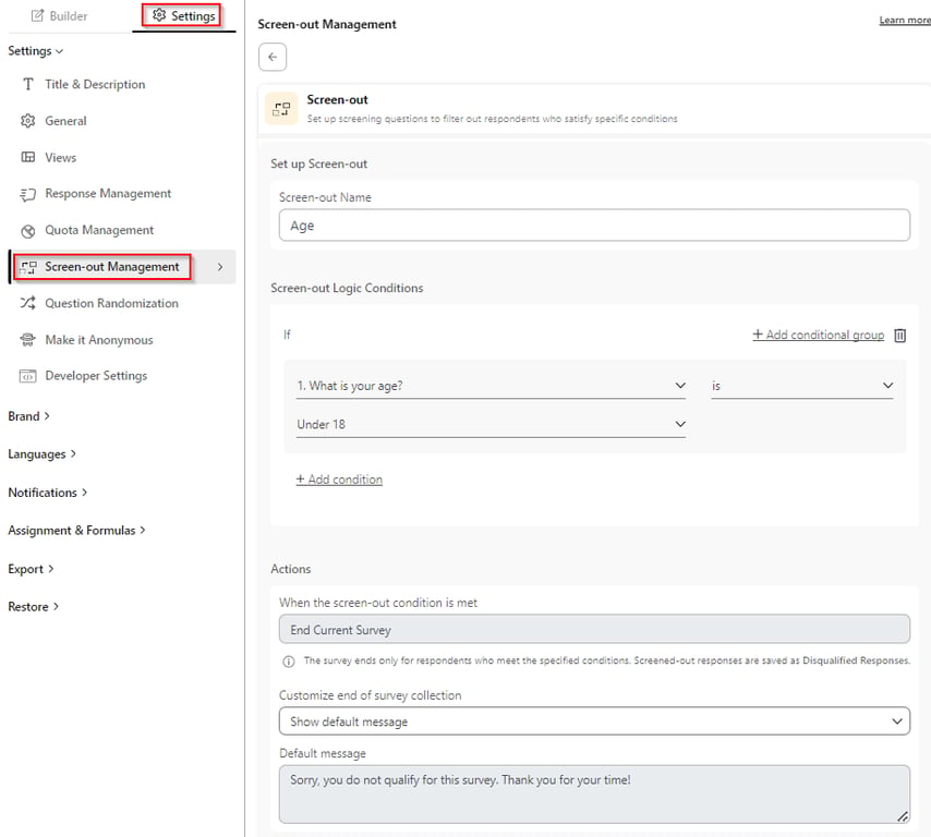 We've added a feature for enhanced control over survey flow with advanced screen-out options, optimizing the respondent experience and data quality
