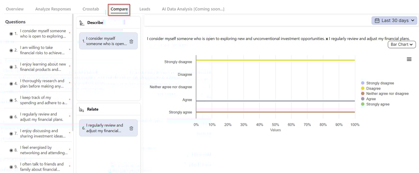 We've improved the Compare feature in the Analytics section, enabling you to compare responses across variables for a more nuanced understanding of trends, behaviors, and patterns.