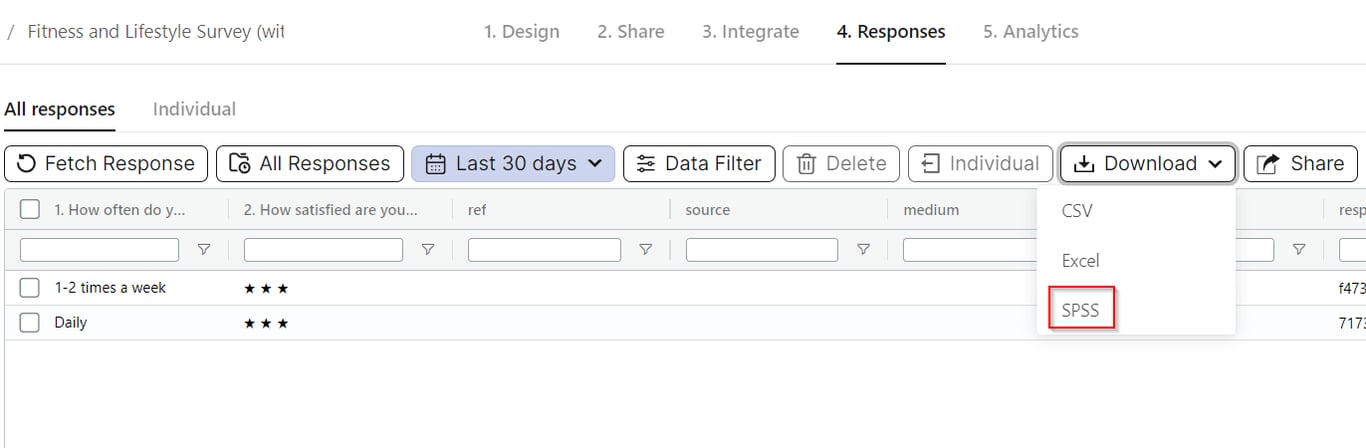 Easily export your survey responses in SPSS (SAV) format directly from the Responses screen. This feature is designed for researchers and analysts looking to perform advanced statistical analysis in SPSS, providing a smooth export experience. Read More!