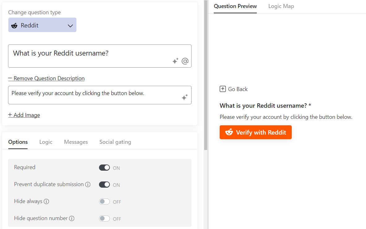 Now you can use the Reddit social identity component to verify respondent Reddit profiles. Combine this with social gating to restrict access based on criteria such as Account Age, Link Karma, or Comment Karma for added security. Read More!